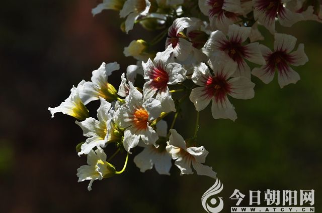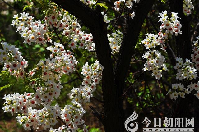 她就是你嗎?文冠果花!就連這花名都是你當(dāng)年對(duì)我的期盼?白色的花瓣如你當(dāng)初白色的裙裾,素潔而高雅;你或紅或黃的花心,恰是當(dāng)年的腰飾;而隨風(fēng)搖曳的風(fēng)姿,恰是你裊娜走向我的款款身姿......我仿佛經(jīng)歷了幾世的輪回,修得善因而結(jié)來善果,讓我在建平青松嶺鄉(xiāng)的華龍山遇見你,這是巧合嗎?可這的的確確是巧合,不喜歡運(yùn)動(dòng)的我,今年第一次登山偏偏就選擇來看你!冥冥中,你頌經(jīng)的聲音一直余音繞梁般縈繞著我,而銘刻在心的卻是“山無陵,天地合,乃敢與君絕”的誓言無聲……