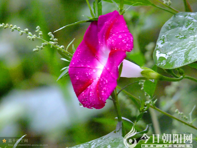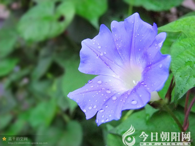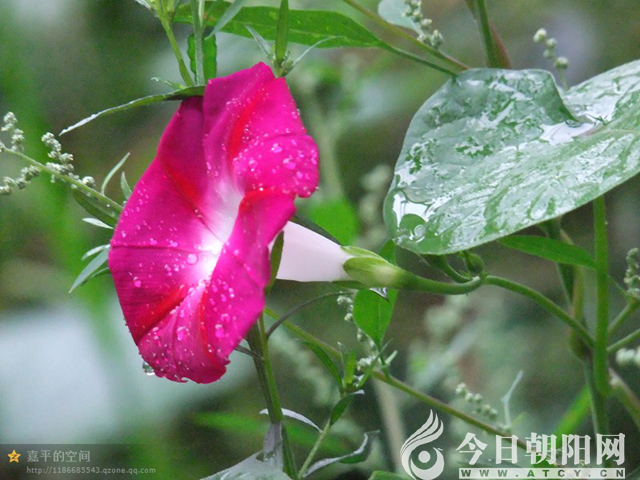 呵!雨中的牽牛花,比起晴日里多了幾分風(fēng)韻和姿色。薄如蟬翼的花片托著晶瑩的雨露,含笑欲滴,秀色可餐。那花的眉眼,嬌嬌生生,如泣如訴,讓人心生愛(ài)憐。當(dāng)我拍攝下它們,再一張張翻看的時(shí)候,張張都漂亮可人,即使是重復(fù)的,也讓我不忍舍棄。