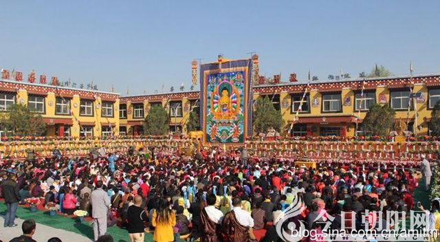 寺院里最引人注目的柏樹有三百多年的歷史,就在大雄寶殿的前面,樹的樣子鐘靈毓秀,是神樹的風(fēng)姿。千佛閣在大雄寶殿的后面,莊嚴(yán)神圣又豪華闊氣。走進千佛閣,站在祥云朵朵的大紅地毯上,面對金光閃閃的千尊文殊菩薩像,內(nèi)心的神圣、景仰油然而生。這恢宏的場面甚至令不信教的一個同伴忍不住趴到地上磕起了長身頭。那一刻,感覺藏傳佛教的光輝和神圣在瞬間就將每個人的心靈照亮了,它讓你的靈魂自然而然地皈依到一個盛大的氣場中,然后,旁無雜念地對著佛像頂禮膜拜,這就是它的魅力!