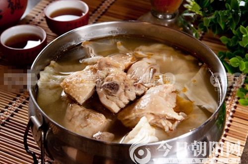 說起排骨燉雞,那是喀喇沁獨有的美味,遠近聞名,很多人不惜驅(qū)車百余里來這兒大飽口福。我們一行人慕名走進喀喇沁鎮(zhèn)外的一家排骨燉雞店,落座后很快一大鋁盆排骨燉雞就端上來了,排骨是又香又爛的精排骨,雞是全雞,外加豆腐和寬粉。據(jù)說豬和雞都是鄉(xiāng)下不喂飼料的那種,既好吃又營養(yǎng)。十幾個人圍一桌子,除了一盤蘸醬菜和幾個小咸菜,再無別的配菜,因為這一大盆排骨燉雞就夠一桌子人吃的了,再多了別的菜,就是浪費。每個人連湯帶肉盛一碗,熱熱地吃起來,果真是美味,排骨和雞肉香而不膩,豆腐嫩香,粉條柔軟綿潤,湯鮮美,一桌子的人大快朵頤,個個贊不絕口。