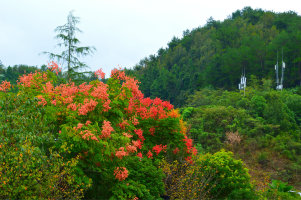 伴隨美不勝收的滬杭高速公路的一路秋染江南的宜人景色,小車駛?cè)朊利惖奈骱L(fēng)景區(qū)。在駛向西溪國(guó)家濕地公園下榻的茭蘆田莊的道路兩側(cè),突然,一行行高大樹冠上盛開的如霞一樣鮮艷的花朵首先映入我的眼簾,讓我賞心悅目,顧及不暇。