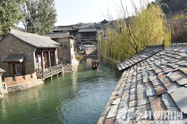 初遇她,就看到了她的柔美。時值初冬,城外已是冷風(fēng)透衣,然而,在進(jìn)入她的“腹地”時,卻感受到了春意的溫暖。仰頭看時,在高山之巔蜿蜒環(huán)繞的一段古長城,銅墻鐵壁般護(hù)衛(wèi)著這里,令人情融融,意濃濃。在進(jìn)門轉(zhuǎn)彎處,忽然看到了她“美麗的眼睛”——“兩灣似蹙非蹙籠煙眉,一雙似喜非喜含情目”。水紋蕩漾,波光瀲滟,似乎含情脈脈地望著過往的行人,笑意盈盈,溫柔可人。翠綠的“眼波”上,游動著自由的小舟,里面不時傳來孩子大人陣陣爽朗的笑聲。飄逸的垂柳拂過她的眉眼,猶如輕撫著她的笑臉,輕輕地,慢慢地,柔柔地……
