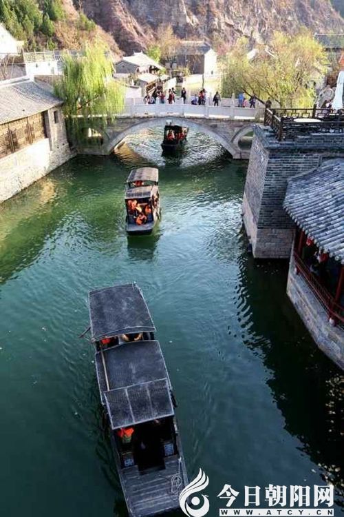 水鎮(zhèn)里那些小橋下、湖面上緩緩劃行的黑色小船,據(jù)說都是從烏鎮(zhèn)運輸過來的烏篷船。800年前的陸游說它是“輕舟八尺,低蓬三扇”,可謂江南水鄉(xiāng)的一道亮麗風(fēng)景?,F(xiàn)在,古北水鎮(zhèn)小橋有了,流水有了,烏篷船也有了,在這里乘船游湖,水中賞景,不是江南勝似江南。作為北方人來說,想想都心生愜意。