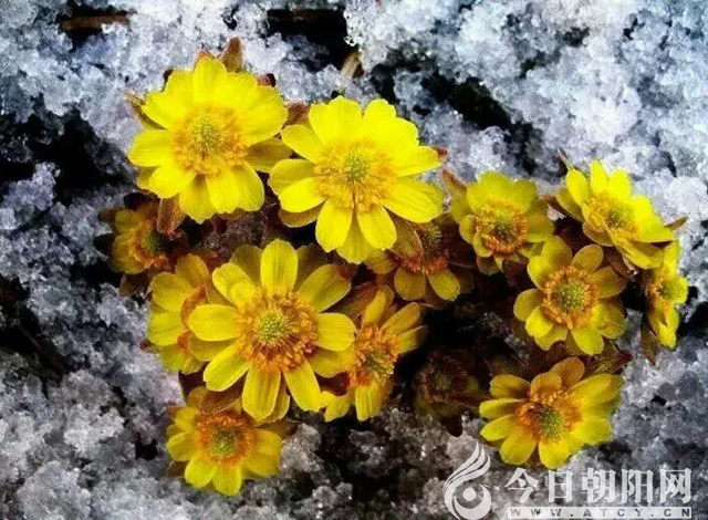 記得四十年前,正當(dāng)風(fēng)華正茂、初中讀書(shū)少年的我,也是一個(gè)晚冬新春的時(shí)候,學(xué)校組織我們同學(xué)到農(nóng)村鄉(xiāng)下進(jìn)行糖化飼料的科學(xué)實(shí)驗(yàn)推廣。有一天,我和幾名同學(xué)翻山越嶺、走在崎嶇的山間小路上,記得好像在一個(gè)向陽(yáng)的山坡下,突然看見(jiàn)不遠(yuǎn)處的一片殘積雪地里,拱出一朵朵、一簇簇頂著雪片鮮艷無(wú)比的金黃色的花朵來(lái),在滿目殘雪春芽待發(fā)的山野里,顯得格外醒目,抓人眼球,惹人生憐,讓人驚艷。