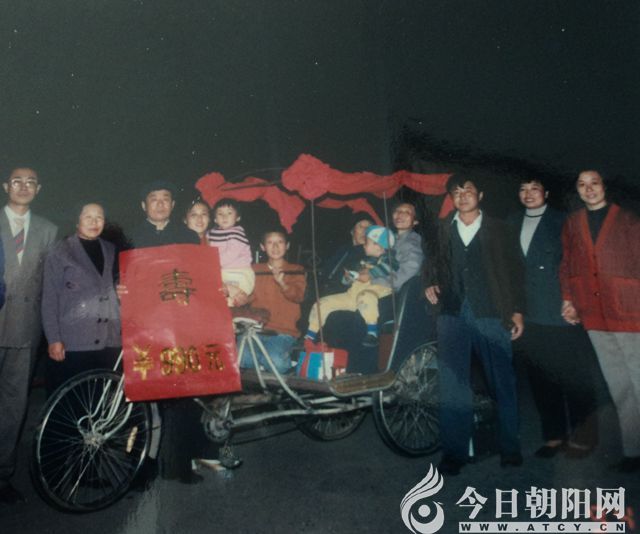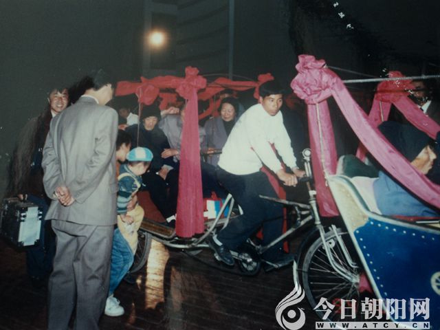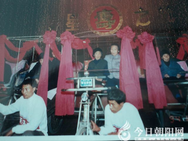 1994年,姥姥被評為朝陽十大壽星。這是姥姥在壽星之光晚會(huì)現(xiàn)場,中間這位老人是姥姥,我的母親也在場