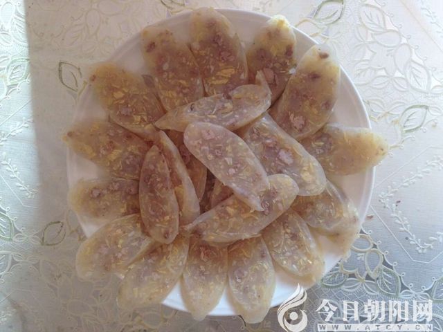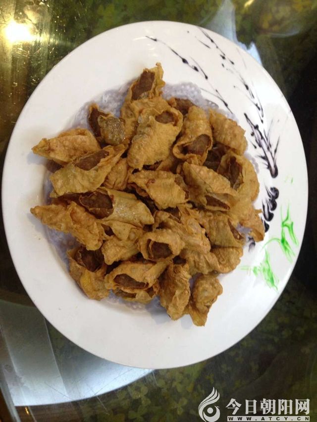 聽夫百歲過世的爺爺講, 夫家并非祖居于木頭城子鎮(zhèn),而是十九世紀(jì)初從山西太原的太谷縣闖關(guān)東時(shí)選擇的在此定居。祖先闖關(guān)東到木頭城子鎮(zhèn),見這里土地平坦,草木豐美,山明水凈,鄉(xiāng)鄰崇善明禮,便決定不再北上。鎮(zhèn)上多數(shù)人也都是清朝才到此定居。200多年過去,蒙漢居民早已融在一起,風(fēng)俗習(xí)慣的差異已不是很大。木頭城子鎮(zhèn)有許多特色風(fēng)味美食,而我最喜歡的是逢年過節(jié)家家都做的粉腸和釬子。先說粉腸。就是把豬的小腸一遍一遍清洗刮薄至玻璃般透明后,將比例相當(dāng)?shù)牡矸邸⑺饽?、碎豆腐皮、少量碎肉沫加上各種調(diào)料攪拌好,灌入備好的小腸中蒸熟,冷卻后便是一根晶瑩剔透、香氣誘人的粉腸,既可切片裝盤上桌,又可掐段手抓食用。還有一美味叫釬子。就是將做大豆腐時(shí)起出來的長(zhǎng)約40厘米、寬約30厘米的豆腐皮(已曬干)泡至半軟后,把調(diào)好的肉餡用豆腐皮卷成釬子的形狀,然后下油鍋炸熟撈出,切成3至4厘米的長(zhǎng)段碼好,一盤金黃、色香味俱全的釬子便完成了。如今鎮(zhèn)內(nèi)有人專做粉腸賣,供不應(yīng)求,鎮(zhèn)內(nèi)的飯店釬子也上了菜譜,但總覺得少了些家的味道,缺少了愛的調(diào)料。