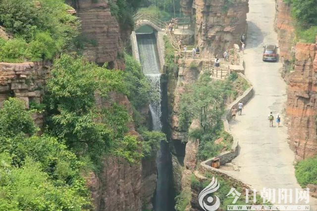 已經(jīng)到了集合的時(shí)間,盡管不愿意離開。要去下一個(gè)景點(diǎn),行走掛壁長(zhǎng)廊。走出了石頭古賽,去站點(diǎn)和朋友們集合。掛壁長(zhǎng)廊,多么驚險(xiǎn)又有詩(shī)情的幾個(gè)字。真的行走在這個(gè)掛壁公路上,才知道了什么是驚險(xiǎn)。頭頂是高聳的懸崖絕壁,腳下是深不見底的萬(wàn)丈深淵。就怕是連鳥也不敢在這里飛翔。山洞九曲十八彎,偶爾地就有旅游的中巴車載著游人呼嘯而過。你不得不緊緊地貼著墻壁慢慢地行走。墻壁上不時(shí)地有水珠滲出,冒著嗖嗖的涼氣。沒有車子過來(lái)的時(shí)候,手扶著木欄,看著對(duì)面陡峭的山峰,瀑布沖天而下,異常地壯美。站在這里,恍如與世隔絕一樣。峭壁懸崖上,點(diǎn)綴著郁郁蒼蒼的植被。在掛壁公路的一端,有一個(gè)拱橋,沿著拱橋,我們走到山澗下。這里,真的是別有洞天,幽深的山澗,瀑布飛流而下形成了一個(gè)綠色的湖泊。我把腳伸進(jìn)水里,一股涼意直沁心頭。仰頭,看那飛旋的瀑布,像九龍吐珠。白花花的水流如萬(wàn)馬奔騰傾瀉到澗底,落在綠幽幽的湖面上蕩起圈圈的波浪又順著山澗叮叮咚咚流向遠(yuǎn)方。心,被這完美的自然景觀震蕩著。望著懸崖峭壁,望著峭壁上的綠色植物,望著從天而降的水花,望著深澗上面的絲絲藍(lán)天,望著觀賞這景色的游人。我禁不住想:與一個(gè)地方,與一些人,是不是得有幾生幾世的緣分,我們才相遇相約在了這樣一個(gè)奇特的景色里。心里,真的不知此處是何地,此時(shí)是何年。也許,在夢(mèng)里來(lái)過這里吧。