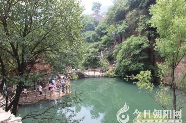 我拿手機(jī)給她們姐妹倆拍了很多小街上的照片,兩姐妹特別的高興。走出了木制小街,到了去山上的路口。就在這路口的旁邊,有一個(gè)很大的水塘,水塘里面有氣墊,很多游人在水里玩著。水塘的上方是一條看不見源頭的峽谷河流,河流里有大小不一的各種石頭,煞是壯觀。有的石頭兀自站立,挺拔著威武的腰身。有的石頭靜臥在水里,安享著水流的撫摸。有的石頭合抱在一起,像是一家子的幾個(gè)親兄弟,共同享受著河流的沐浴。清澈的水流順著石頭的縫隙叮叮咚咚地流著。這水,氣勢很不一般,有的水流遇見了尖尖的大塊石頭,飛濺起很高的浪花,似珍珠碎玉一般灑向天空,旋即又散落到溪流里,輕快地匯入溪水流淌下山。看著山澗兩邊俊秀的山峰,路旁綠樹成蔭,還有這淙淙流水,那個(gè)綏中的妹妹不愿意去爬山了,甚至也不想去看那黑龍?zhí)镀俨剂?。她有了這個(gè)想法,我極力地慫恿著:“這里的景色太美了,我們就在這里玩水吧。”