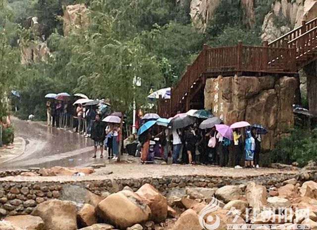 每個(gè)到此游玩的人,都想去上面那個(gè)玻璃棧道上走走。我們都在微信視頻里見(jiàn)到過(guò)那些恐高者在玻璃棧道上戰(zhàn)戰(zhàn)兢兢的樣子以及被人拖著還哭得死去活來(lái)的窘相,可是在這樣一個(gè)特殊的節(jié)假日,懷有相同想法想上玻璃棧道的人實(shí)在不少,看著棧道口處排起的長(zhǎng)龍,還真不知道時(shí)間都去哪兒了呢。顧此失彼,真叫人遺憾!可是最掃興的還不是這個(gè),而是頭上的烏云,心里祈禱上蒼垂憐,可是幾聲炸雷,雨落頭上,才知道這雨來(lái)得準(zhǔn)時(shí)。一邊是疾雨兜頭而落,一邊是棧道隨雨關(guān)閉。等還是不等,的確是個(gè)考驗(yàn)。很多人落荒四散,竟然還有如我一樣的人堅(jiān)持著等下去。不時(shí)有人前來(lái)詢問(wèn)那個(gè)守門的黑小伙兒,什么時(shí)候能開(kāi)放。小伙子也幽默,“不知道,我說(shuō)了不算,等雨停吧”。可是什么時(shí)候這雨才停呢,雨水淋濕了衣服和鞋子,雨大有傘也沒(méi)有用。不忍心就這樣任時(shí)光流逝,我和妻雨中舉傘前行。其實(shí),雨中登上木頭棧道也別有一番趣味。一來(lái)沒(méi)有那些攢動(dòng)的人頭,看風(fēng)景,恨不能一人獨(dú)享。二來(lái)雨中的清山綠水也更靈動(dòng)可親。一路給妻拍了很多美好的瞬間,告訴山水,我們?cè)?jīng)來(lái)過(guò)。