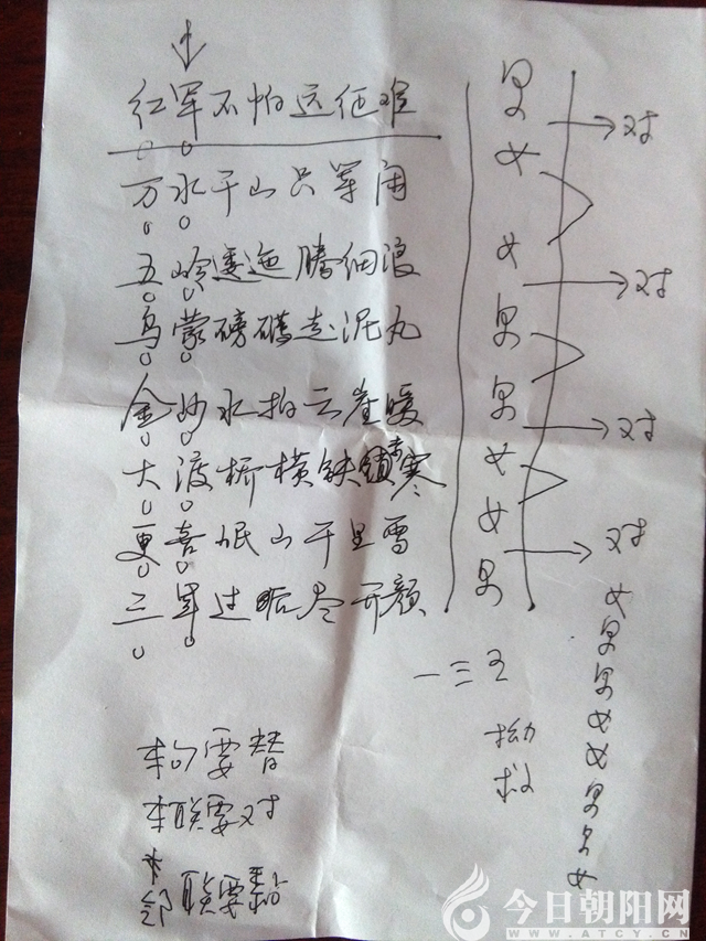 中原老師以七律《長征》為例,邊標記邊講解:本句要替、本聯(lián)要對、鄰聯(lián)要黏。又講了橫看二四六,豎看一條線等訣竅。甚至以男女代平仄,使人一聽就懂,興味盎然、茅塞頓開、過目不忘。