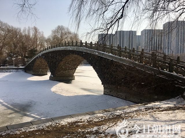 友誼賓館是家國(guó)賓館,院子很大也很美。春夏秋冬四季各有風(fēng)姿。我只當(dāng)這里是一處公園,一處休閑圣地,所以經(jīng)常來(lái)此散散步,放松心情。昨日大雪,原我就想到那個(gè)湖,那座石拱橋,想象著湖與橋大雪皚皚下光影交錯(cuò)該是怎樣一種美,該是攝人心魄吧。我想到許嵩的《斷橋殘雪》,“斷橋是否下過(guò)雪,我望著湖面,水中寒月如雪,指尖輕點(diǎn)融解……”此刻,雪肯定是下了,也許殘了,橋可是沒斷哦,恰好從媽媽家回來(lái)路過(guò),怎能不進(jìn)去看看呢?