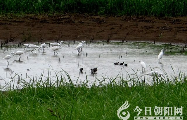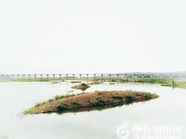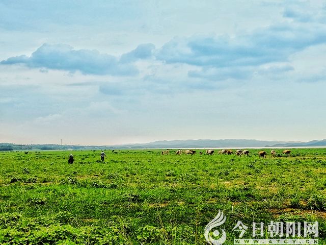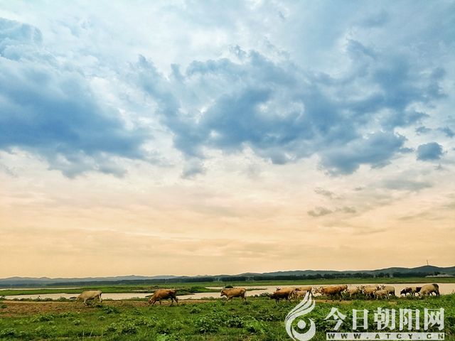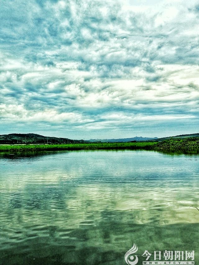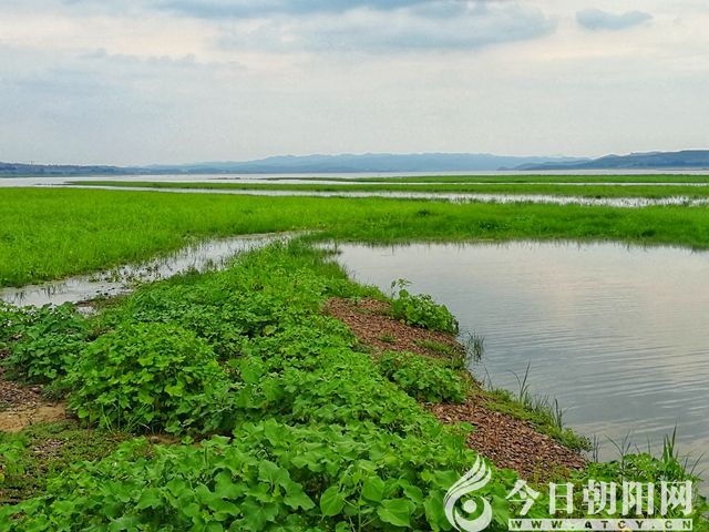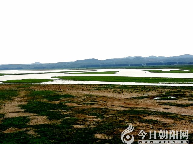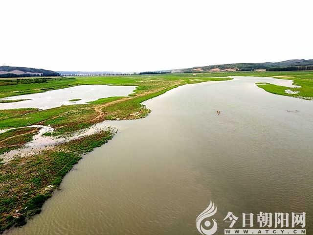 隨著幾場(chǎng)雨水的潤(rùn)澤,地勢(shì)平坦的濕地百草蔥郁,翠綠可人,悠閑的牛群宛若隨時(shí)變化的云朵,在草地上游走。濕地核心區(qū)域,大凌河主流與數(shù)條支流恰似玉帶環(huán)系在濕地的“腰身”上,周?chē)椴贾蟠笮⌒〉某靥?,依如一塊塊明亮的鏡子,鑲嵌在綠海之中。