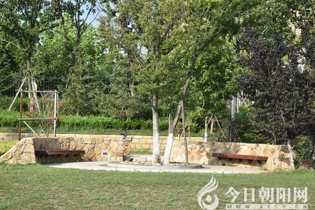 這個(gè)賓館與北陵公園相毗鄰。中間只有一網(wǎng)之隔。緊鄰北陵公園的地方是賓館的綠地,也許這本來就是北陵公園的一部分,只是用一張鐵絲網(wǎng)將其隔開,作為賓館的一塊綠地,賓館把它建成了一個(gè)綠色公園。公園呈開放式,外面與北陵公園相望,里面與院里廣場(chǎng)相連。綠樹、草坪,石亭、花徑,小橋、流水,魚游、鳥鳴,很是別致。