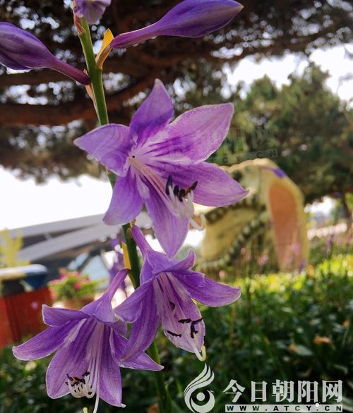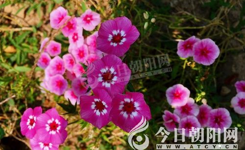 漫步在朝陽(yáng)鳥(niǎo)化石國(guó)家地質(zhì)公園里,可以看見(jiàn)在門(mén)口處種有紫玉簪和天藍(lán)繡球。玉簪花可謂花如其名。紫色的花萼,像一把精美的簪子,又像一串美麗的鈴鐺。小天藍(lán)繡球的花色繁多。乍看,很容易誤以為是一片石竹花。曾在玉龍湖邊見(jiàn)過(guò)五顏六色的石竹花,花的邊緣是鋸齒狀,而此花卻不是。俯身觀賞,粉中透紅,紅白相間,向陽(yáng)而生,充滿希望。
