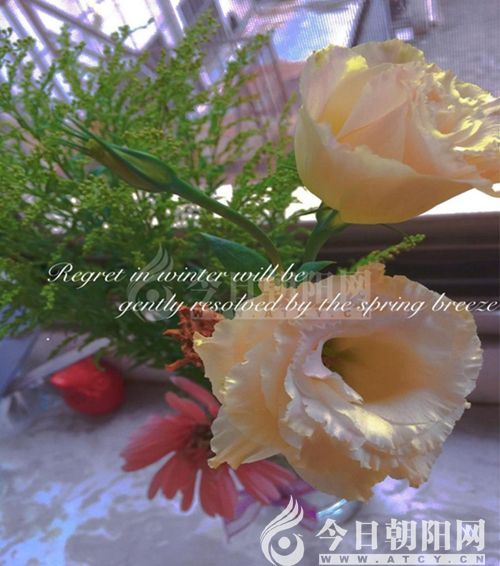 我把一束鮮花擺放在廚房的窗前,并把修剪好的花枝插在了水瓶里。每天清晨,我都會與它們道聲早安,換掉微渾的水,再用噴壺在花瓣上噴一噴,然后微笑,轉身離去。